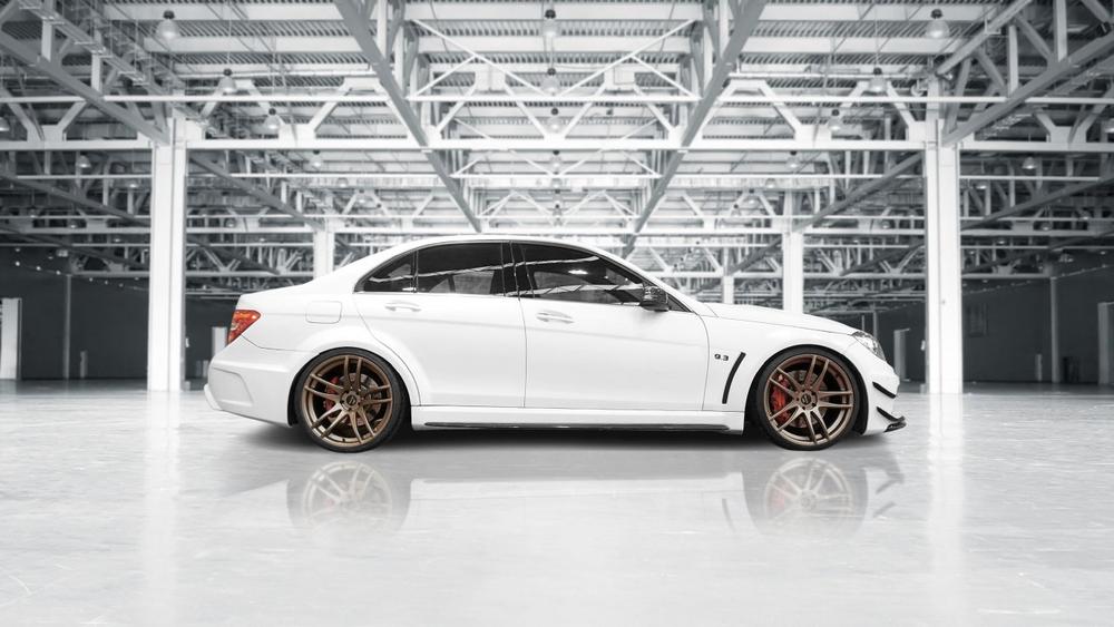 Ergänzend zu dem neuen Felgensatz besitzt der breite C 63 AMG auch ein KW Variante 3-Gewindefahrwerk, das seinen sportlichen Charakter durch eine Verbesserung der Fahrverhalten zusätzlich untermauert. Zudem sorgt es dank einer Tieferlegung für eine noch dynamischere Optik. Ein Dankeschön geht an das Unternehmen Steindorf Sharing, in dessen Besitz sich der Mercedes befindet.
