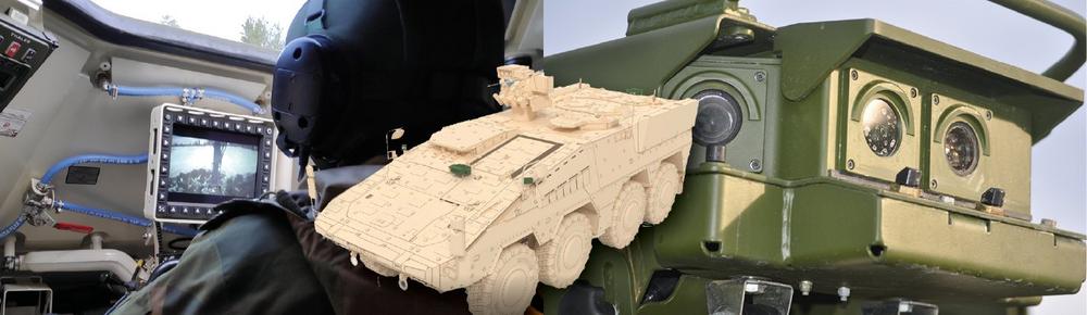 In the Armor Eye maximum version, over 20 high-resolution cameras in various wavelength ranges are in use on the tank, capturing every critical area. The Panoramic View Stitching process enables ergonomic, latency-free 360o viewing as if looking through glass. Even under the most difficult conditions, such as complete darkness, smoke, fog, and even in covert operation mode, the multispectral combination of VIS and LWIR sensors offers good sight 24/7. An extreme DRI range is achieved using the optics and sensors combination; using zoom, even the finest details become visible.