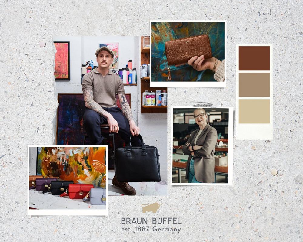 Durch die Zusammenarbeit von BRAUN BÜFFEL mit dem Künstler Daniel Schweineberg erfahren die Kollektionen des Traditionsunternehmens neue, schöpferische Impulse. Mit dem Input des jungen Kreativen entsteht eine harmonische Symbiose aus hochwertigen Lederprodukten, welche stets ein Unikat sind, und künstlerischer Einzigartigkeit, die ebenso unvergänglich ist, wie das zeitlose Design und die hochwertige Verarbeitung der BRAUN BÜFFEL-Produkte.