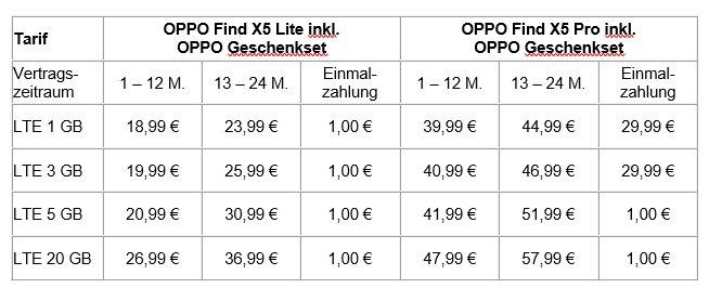 yourfone erweitert das Hardware-Portfolio und nimmt zwei Geräte der neuen OPPO Find X5-Serie auf. Die brandneuen Handy-Flaggschiffe – OPPO Find X5 Lite und OPPO Find X5 Pro – sind ab sofort bei yourfone bestellbar. Dabei erhalten alle Besteller eines Smartphones der OPPO Find X5-Serie ein OPPO Geschenkset im Wert von bis zu 406 € (UVP) gratis dazu. Beide OPPO-Handys werden mit den Mobilfunktarifen von yourfone mit einem monatlichen Datenvolumen zwischen 1 GB und 20 GB ab 18,99 € monatlich angeboten. Das Aktionsangebot ist bis zum 04.04.2022 gültig.