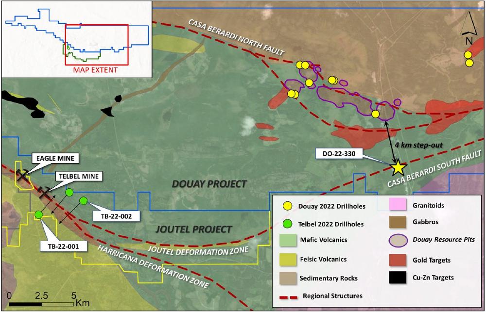 In addition, the Company anticipates commencing a ~10,000 m deep drilling program at Douay with a fourth drill rig in November. The JV has approved a combined ~16,000 m of deep drilling at Douay and Telbel under the previously announced C$4.8M increase to its Year Two exploration budget (see news from May 18, 2022).