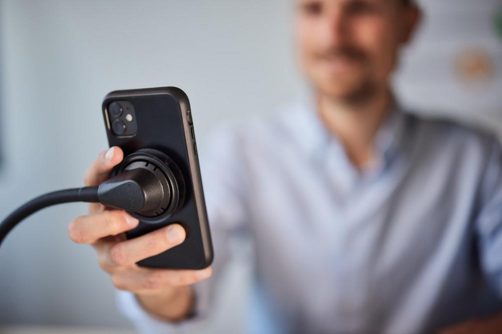 Smartphone-Halterungen für den Tisch gibt es viele – nur kaum eine überzeugt wirklich in punkto Flexibilität und Sicherheit. Neben Standfestigkeit sowie Höhen- und Winkelverstellbarkeit spielt das Thema Kompatibilität eine wichtige Rolle – das wissen auch die Entwickler von FIDLOCK. Daher haben sie die VACUUM Technologie, die u. a. mit dem Design Innovation Award 2021 ausgezeichnet wurde, weitergedacht und eine multifunktionale Halterung mit flexiblem „Schwanenhals“ für den (Schreib-)Tisch entwickelt.
