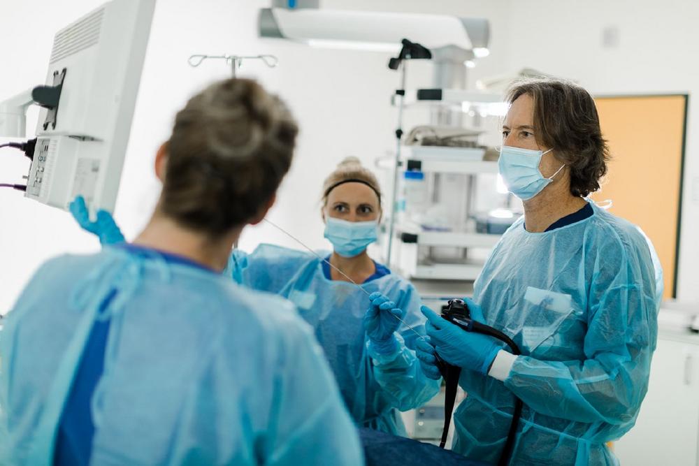 Grundsätzlich sei Vorsorge keine große Sache, ermuntert Dr. Nitsche, zumal Versicherte zwischen 50 und 54 Jahren bei der Krebsvorsorge einen Anspruch auf einen jährlichen Stuhltest hätten. Mit diesem werde festgestellt, ob sich nicht sichtbares – sogenanntes „okkultes“ – Blut im Stuhl befinde. Außerdem wird Männern ab 50 Jahren und Frauen ab 55 Jahren empfohlen, zusätzlich eine Darmspiegelung (Koloskopie) zu machen. „Bei dieser Untersuchung können Polypen entdeckt und direkt entfernt werden, bevor diese entarten und zu Krebs werden“, erklärt der Chefarzt.