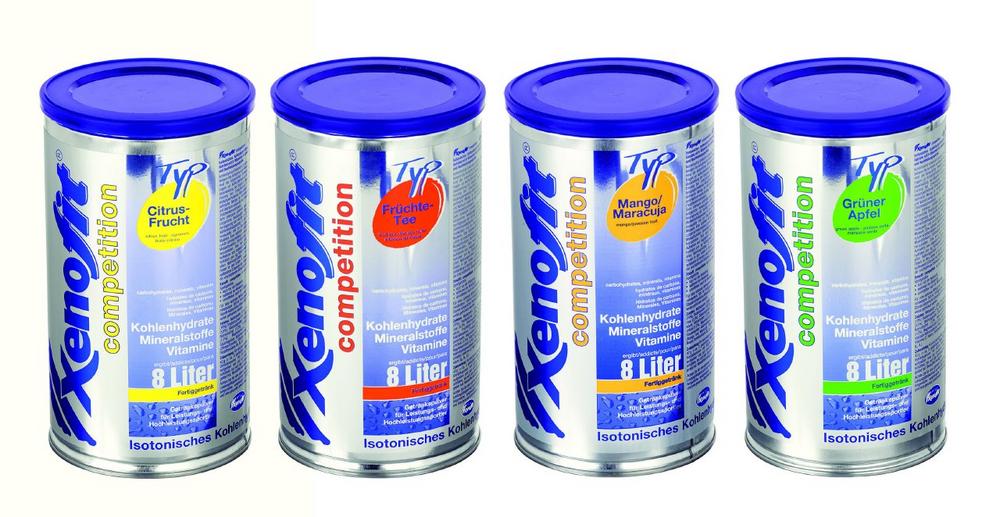 Xenofit competition gibt es in 4 Geschmacksrichtungen: Citrus-Frucht, Früchte-Tee, Grüner Apfel und Mango-Maracuja. Erhältlich in der Vorratsdose zum Anmischen von 8 Litern Fertiggetränk und als Einzelportionsbeutel für jeweils 0,5 ml. Auch Vegetarier und Veganer können Xenofit competition verwenden. Außerdem enthält es keine Laktose und kein Gluten.