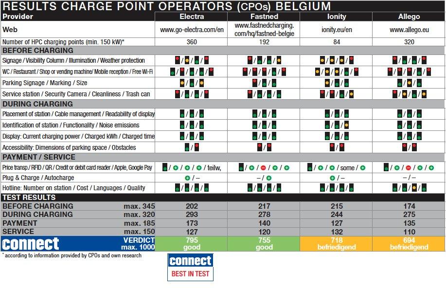 In Belgium, the four CPOs Allego, Electra, Fastned and Ionity were tested, in the Netherlands the five CPOs Allego, BP Pulse, Fastned, Ionity and Shell Recharge were tested, and in Luxembourg the CPOs Aral Pulse and Chargy.
