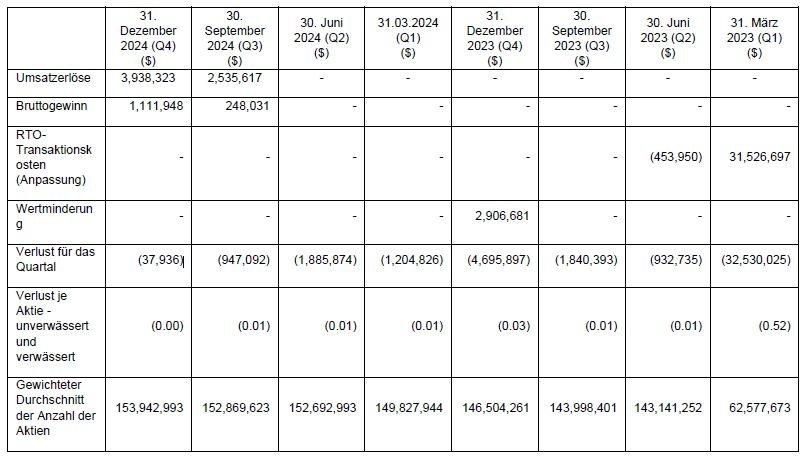 (Ausgewählte Finanzinformationen, die nachstehend aufgeführt sind, basieren auf dem ungeprüften verkürzten (konsolidierten) (Zwischenabschluss des Unternehmens) für jedes der aufgeführten Quartale, der (in Übereinstimmung mit IFRS), wie für die Quartalsberichterstattung anwendbar: erstellt wurde.