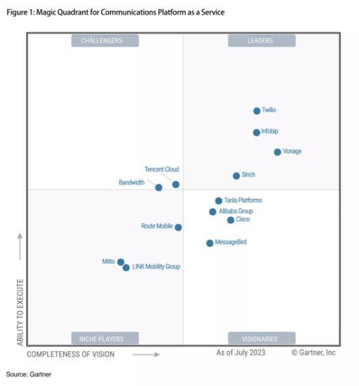 ** Gartner, „Competitive Landscape: Communications Platform as a Service report” von Brian Doherty, Daniel O’Connell, Lisa Unden-Farboud, Ajit Patankar, 17. März 2023