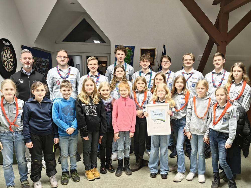 Stellvertretend für die Stiftung übergab Stiftungsbotschafter Sebastian Thielker, Geschäftsführer der Thielker MassivHaus GmbH in Greven, die Urkunde und lobte das Engagement der Ausgezeichneten: „Schön, dass die Kinder Pfadfindertechniken erlernen und z. B. mit Holz werken. Als lokaler Bauunternehmer finde ich die handwerklichen, motorischen Aufgaben natürlich besonders gut und wichtig. Ich freue mich einen Beitrag zu dem diesjährigen, sehr gut besuchten Pfingstlager leisten zu können.“