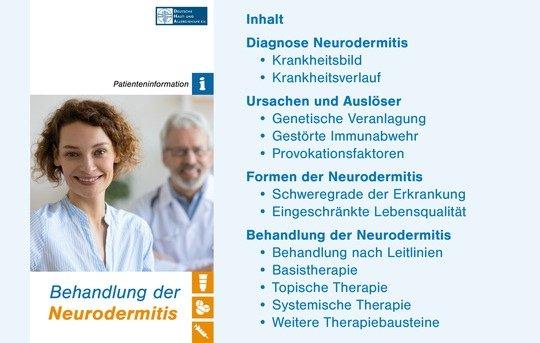 Die Broschüre „Behandlung der Neurodermitis“ beschreibt Krankheitsbild, Ursachen und Formen der Neurodermitis und stellt Therapieoptionen vor. In die aktuelle Ausgabe sind neue Erkenntnisse insbesondere in der Behandlung mittelschwerer und schwerer Formen der Erkrankung bei Kindern und Erwachsenen eingeflossen. Die Broschüre wurde mit finanzieller Unterstützung der Sanofi-Aventis Deutschland GmbH realisiert und kann bei der Deutschen Haut- und Allergiehilfe e.V. kostenfrei angefordert oder im Internet heruntergeladen werden: DHA e.V., Heilsbachstraße 32, 53123 Bonn, www.dha‑neurodermitis-behandeln.de.