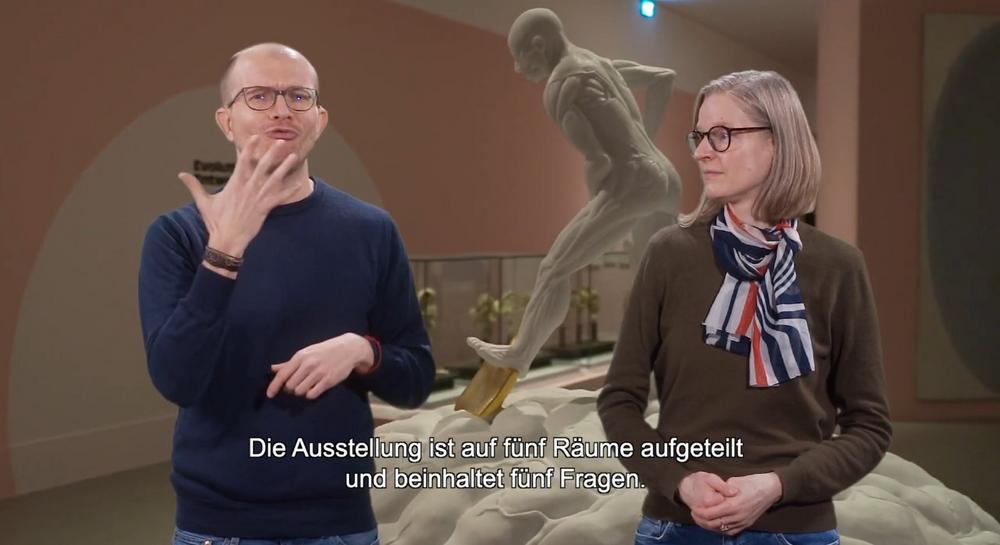 Der sechsminütige barrierefreie Film, produziert von der Bundeskunsthalle, ist mit Ton, Untertitelung und in Deutscher Gebärdensprache zu sehen: https://www.youtube.com/watch?v=JMQVLIUWVt8.