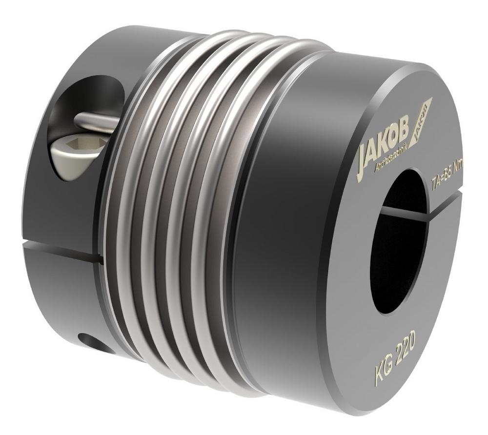 Die lange bewährten Metallbalgkupplungen der Baureihen ‚KG‘ und ‚MKG‘ von JAKOB Antriebstechnik verfügen ab sofort über brünierte Naben, welche einen verbesserten Rostschutz und höhere Widerstandsfähigkeit gegen Umgebungseinflüsse bieten. Bei dieser Art der Oberflächenveredelung handelt es sich nicht um eine aufliegende Schicht wie beispielsweise beim Vernickeln, Verchromen oder Lackieren, sondern um eine chemische Reaktion mit dem Material. Durch die Substrat-Umwandlung werden Abmessungen und Toleranzen des Bauteils nicht verändert.
