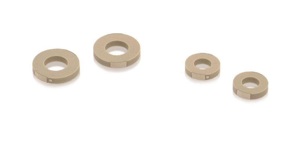 Die Chipaktoren werden als Scheibe oder Ring angeboten, die Standardabmessungen reichen von 8 mm bis 16 mm Außendurchmesser. Sonderabmessungen und –formen sind ebenfalls möglich.