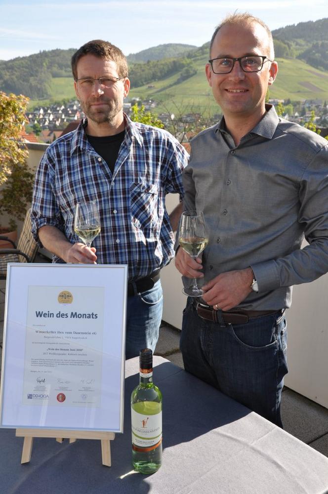 Alljährlich wählt eine Jury aus Mitgliedern des badischen und des württembergischen Weinbauverbands sowie des DEHOGA Baden-Württemberg Weine des Monats als Sommer- und Winterweine. Kellermeister Alexander Spinner konnte im Restaurant „Schützenhaus auf dem Turmberg“ in Karlsruhe-Durlach die Auszeichnung entgegen nehmen. Überbringerin der Urkunde war die Staatssekretärin im Ministerium für Ländlichen Raum und Verbraucherschutz Baden-Württemberg, Friedlinde Gurr-Hirsch. Als Gewinner wurden je drei Weine von württembergischen Weinbaubetrieben und zwei Weine aus Baden bestimmt. Verkostet wurden alle Weine von einer Jury, bestehend aus Mitgliedern des badischen und des württembergischen Weinbauverbands sowie des Deutschen Hotel- und Gaststättenverbandes Baden-Württemberg (DEHOGA). In die finale Verkostung kamen 35 Weine. „Für mich stand der Wein schon bei der Abfüllung auf der Favoritenliste. Er ist nicht zu schwer, hat trotzdem Spiel und Länge! Wir freuen uns sehr über diese Auszeichnung, ist sie doch auch ein Türöffner zur Gastronomie landesweit“, kommentiert Kellermeister Alexander Spinner den Erfolg.