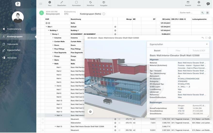 Mit NOVA AVA können alle AVA-Prozesse anhand des Gebäudemodells online bearbeitet werden.