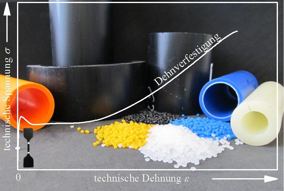 Konventionelle Prüfmethoden zur Charakterisierung der Spannungsrissbeständigkeit von Thermoplasten und daraus gefertigten Produkten sind oft zeitaufwendig. Zudem sind quantifizierbare Aussagen innerhalb vertretbarer Prüfzeiten kaum mehr möglich. Dies gilt insbesondere dann, wenn für Langzeitanwendungen Werkstoffe mit sehr guter Spannungsrissbeständigkeit eingesetzt werden. Der SHT ermöglicht die Charakterisierung der Spannungsrissbeständigkeit jedoch durch die Betrachtung des Dehnverfestigungsverhaltens in uniaxialen Kurzzeitzugversuchen. Dabei tritt kein Spannungsriss im eigentlichen Sinn auf, vielmehr wird das mikroskopische Verhalten des Werkstoffs makroskopisch nachgestellt.
