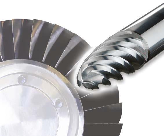 Im Vergleich zu Kugelkopffräsern kann die konische Form mit der deutlich größeren Kontaktfläche am Werkstück beim Fräsen zu Vibrationen führen, dem wird jedoch durch den unregelmäßigen Spiralwinkel der Schneiden vorgebeugt. Die Genauigkeit von ±0,01 mm von Stirn- (RE1) und Tangentialradius (RE2) ist ebenfalls ein Schlüsselfaktor für die Gewährleistungen einer gleichbleibenden geometrischen Genauigkeit des fertigen Bauteils. Darüber hinaus reduzieren sich die 6 Schneiden auf 3 Schneiden, um den Bereich am Kopfradius zu vergrößern und so eine verbesserte Spanabfuhr zu ermöglichen. Diese Fräsergeometrie eignet sich ideal für eine Bearbeitung von Blatt bis zur Fußsektion.