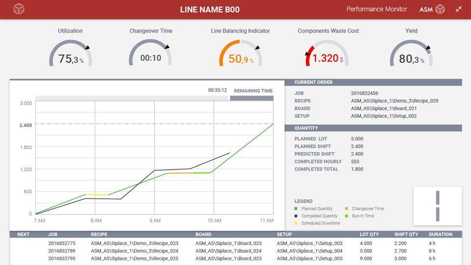 Echtzeit-KPIs, Drilldown-Funktionalitäten, verfügbar auf Mobilgeräten, rollenspezifische Ansichten, automatisierte Reports und Alerts – mit ASM Performance Monitor 2.0 stellt Technologieführer ASM eine weitere leistungsstarke Komponente für das moderne Factory Monitoring bereit. Die neue ASM-Software integriert sich nahtlos in die bestehende ASM Software- und Maschinenlandschaft, erfasst Maschinendaten in Echtzeit und errechnet aus diesen sechs zentrale KPIs. Die KPIs sind: Utilization (Auslastung), OEE (Overall Equipment Efficiency nach SEMI-Standard), OEE Benchmark (OEE auf die theoretische Bestückleistung von Maschine/Linie bezogen), Component Waste Rate/Costs (Abwurfrate bzw. Kosten der abgeworfenen Bauteile), Changeover Time (Zeiten für Produkt- und Rüstwechsel) und Yield (Qualitätskennzahl nach Berechnung durch Post-Reflow-AOI).