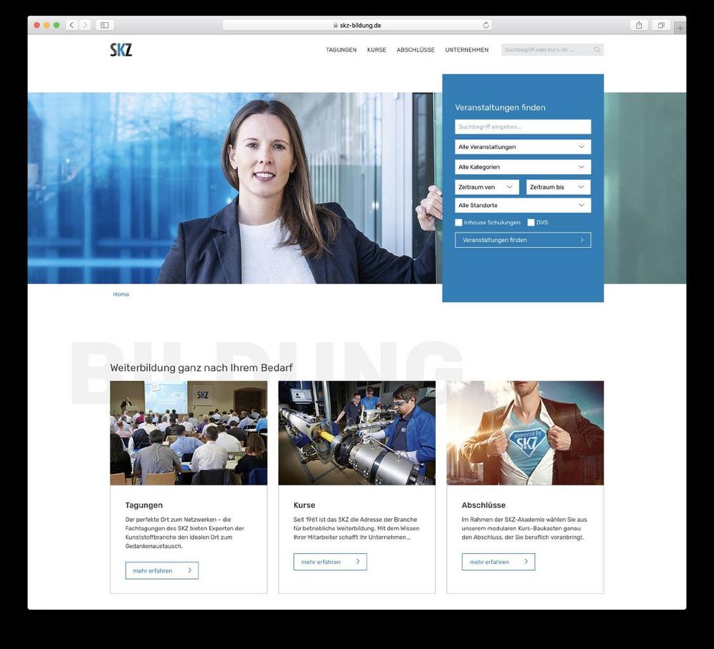Auch das SKZ hat sich zu einem Frühjahrsputz in seiner Weiterbildung entschieden. Die neue Homepage https://www.skz-bildung.de erstrahlt seit Anfang Mai in einem modernen und adaptiven Glanz. Lehrgänge, Seminare und Tagungen können nun noch einfacher gefunden werden, egal ob Smartphone, Tablet oder PC benutzt wird. Die wichtigen Suchfunktionen und Menüs sind dabei immer gut zu erreichen. Auch die Suchfunktion selbst wurde gründlich auf Vordermann gebracht. Nun kann bequem direkt nach der Veranstaltung, nach einer Kategorie oder auch nach einem Zeitraum gesucht werden. Bei über 300 individuellen Veranstaltungen mit etwa 600 Terminen pro Jahr ist so eine intuitive Suchfunktion natürlich obligatorisch.