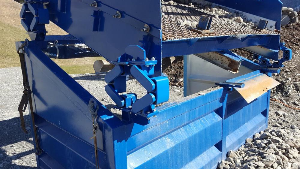 Die stationäre Siebanlage wird vor allem für das Befördern von Humus verwendet. Dabei werden die verschiedenen Erdschichten voneinander getrennt. Doch durch das Hineinschütten von Humus auf das Sieb entstehen grosse Lasten, welche durch acht Gummidämpfer abgefedert wurden. Jedoch waren die Schwingungen so hoch, dass die Vibrationen trotzdem auf die Stahlkonstruktion übertragen wurden. Dies führte dazu, dass sich mit der Zeit Risse im Unterbau gebildet haben. Ausserdem musste die Förderleistung bei klebrigem und lehmigem Humus deutlich reduziert werden, da die Dämpfer hierfür zu hart waren.