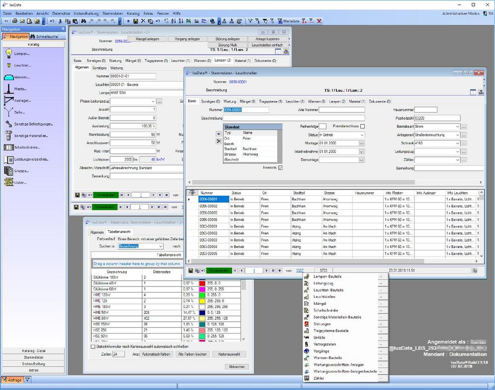 luxData.licht – Das marktführende Managementsystem für alle Daten der Straßenbeleuchtung. Die Mitarbeiter der Kommunen, Stadtwerke und Energieversorger nutzen im Bereich Straßenbeleuchtung luxData.licht als zuverlässiges Datenmanagement-Tool. Alle wichtigen Informationen, den gesamten „Lebenslauf der Leuchtstelle“, Wartungsintervalle und Prüfungen, aber auch Verbrauchsdaten, Lebensdauerberechnungen und Kostenstellen, werden in der Datenbank von luxData.licht hinterlegt. Vor allem für die Dokumentation von LED-Technik, für voreingestellte Dimmstufen, Vorschaltgeräte und deren rasant fortschreitender Entwicklung, ist es relevant, alle Daten „historisch verlässlich“ für nachfolgende Generationen, Kollegen zu dokumentieren.
