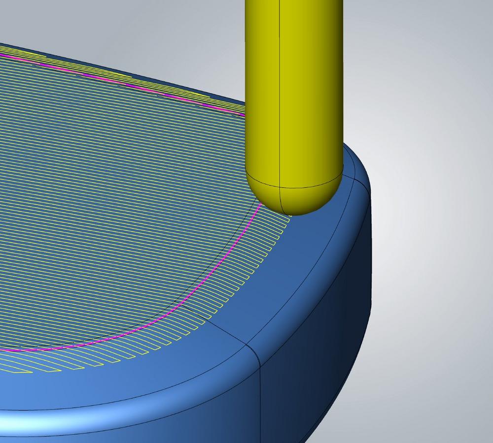 Ein weiterer Bestandteil für die hochpräzise Flächenbearbeitung ist die Funktion „Sanftes Überlappen“ zum Verschleifen von Übergängen zwischen Flächen. Eine optimierte Bewegungsführung des Werkzeugs sorgt im Überlappungsbereich für einen perfekten, nicht spürbaren Übergang zur danebenliegenden Fläche. Der Anwender hat die Möglichkeit, mit dieser Option flexibel auf die Bauteilgegebenheiten einzugehen.