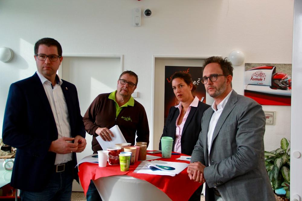 Am praktischen Beispiel in der betriebseigenen Werkstatt demonstrierte Michael Heuser die verschiedenen Optionen der Bechernutzung am Heißgetränke-Standgerät. Neben dem klassischen Einwegbecher aus Kunststoff steigt bei Unternehmen vor allem die Nachfrage nach einer Umstellung auf Papierbecher. Das bestätigten auch Gudrun Krämer und Rainer Sauer. Diese ist meist unkompliziert möglich, geht aber mit einer Preissteigerung von 5-10 Cent einher.