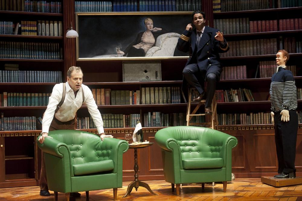 Das ganze Stück spielt – wie es sich für ein »locked room mystery« gehört – in einem abgeschlossenen Raum. Gemeinsam mit Ausstatterin Kathrin Younes baut Regisseur Everding eine alte englische Bibliothek auf die Bühne – Zeichen des Wohlstandes und der vermeintlichen intellektuellen Überlegenheit von Andrew Wyke gegenüber dem kleinen italienischen Reiseverkäufer Milo Tindle.