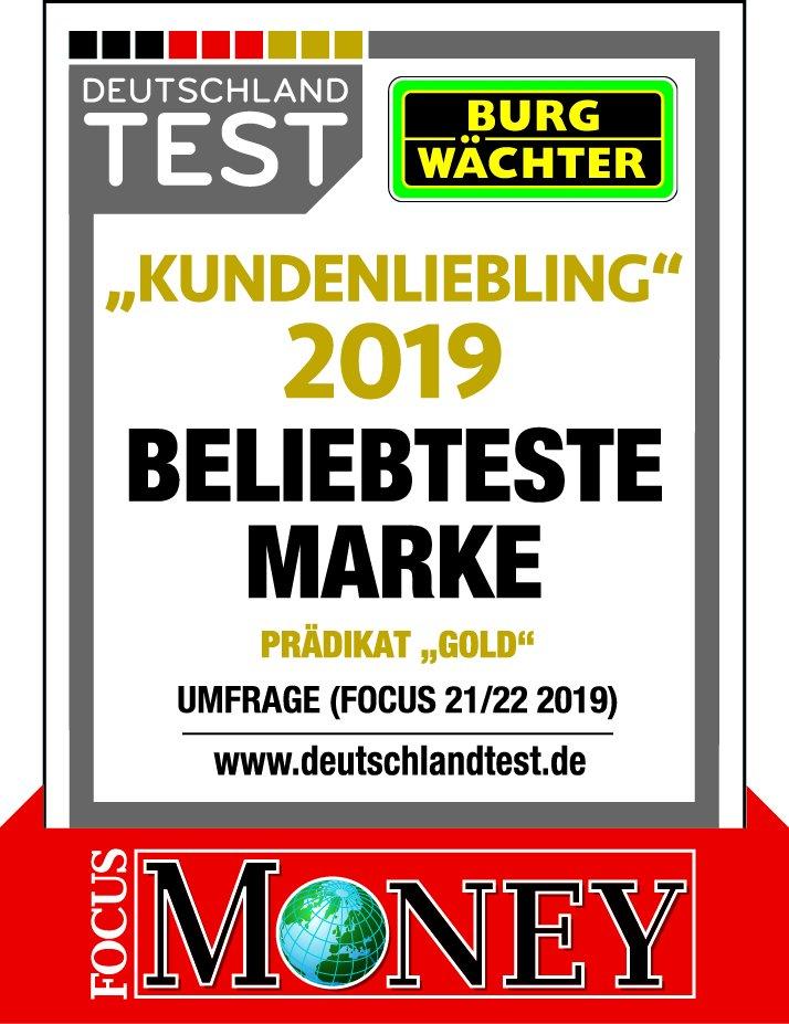 Mit welchen Marken sind Kunden besonders zufrieden? Welchen Marken vertrauen sie? Eine der größten Untersuchungen Deutschlands liefert die Antworten. Der „Deutschland Test“ hat über das komplette Jahr 2018 ca. 20.000 Marken aus 250 Branchen auf den Prüfstand gestellt. Und das Ergebnis der Analyse von insgesamt 39 Millionen Kundenaussagen im Internet zu Themen wie Qualität, Service, Preis-Leistung und Ansehen hat ein klares Ergebnis gebracht: „Kundenliebling 2019“ in der Branche „Sicherungs- und Warngeräte“ ist BURG-WÄCHTER. Der 1920 gegründete Sicherheits-Spezialist aus Wetter-Volmarstein erhielt als einziger Branchenvertreter die Auszeichnung in Gold – und das mit der Maximalpunktzahl von 100,0.