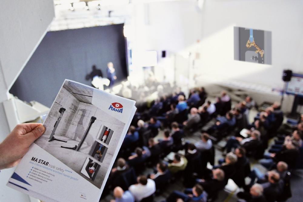 Als Schauplatz für die Produktpräsentation diente das neue MAHA TRAINING CENTER. Durch gekonnte Planung, Dekoration und mit Hilfe des MAHA-eigenen Betriebsrestaurants wurde die sonst zweckmäßige Schulungshalle umfunktioniert, um den Star des Tages vorzustellen und die Kunden mit Köstlichkeiten zu verwöhnen. Die Teilnehmer konnten sich anschließend direkt selbst von den zahlreichen Vorteilen der neuen Hebebühne überzeugen. Zugleich bot sich die Gelegenheit, die wichtigsten Neuerungen an fünf vorbereiteten Technik-Stationen „live“ zu erleben, Fragen zu stellen und sich mit den MAHA-Experten auszutauschen. „Wir freuen uns, unseren weltweiten Kunden und Handelspartnern mit der MA STAR ***** triple safety einen absoluten Werkstatt-STAR anbieten zu können“, so Fuchs in seiner Ansprache bei dem offiziellen Produktlaunch. „Seien Sie gespannt, denn zur Automechanika im September sind noch zahlreiche weitere Produktneuheiten geplant, die wir auf der Messe präsentieren werden.“