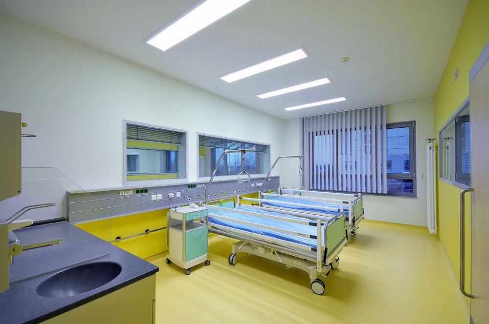 Die Module für die Intensivstationen werden in den Werken von KLEUSBERG mit den wichtigen Medizintechnikkomponenten und der erforderlichen Infrastruktur vorgerüstet. Durch diesen Grad der Vorfertigung kann anschließend ein Gebäude in Modulbauweise wesentlich schneller als z. B. ein Massivgebäude errichtet werden. Aber auch hier ist natürlich eine bedarfsgerechte Planung unter Einbeziehung der örtlichen Gegebenheiten zwingend erforderlich. Solche hochsensiblen Klinikbereiche lassen sich schon unter Hygienegesichtspunkten nicht in wenigen Tagen aus dem Boden stampfen. Daher hat KLEUSBERG eine Komplett-Lösung konzipiert, die sich an eine bereits realisierte und erprobte intensivmedizinische Station anlehnt, und die dank komplett vorliegender Statik, Baubeschreibung sowie haus- und medizintechnischer Einrichtung mit einem Zeitvorteil von über 2 Monaten realisieren werden kann.
