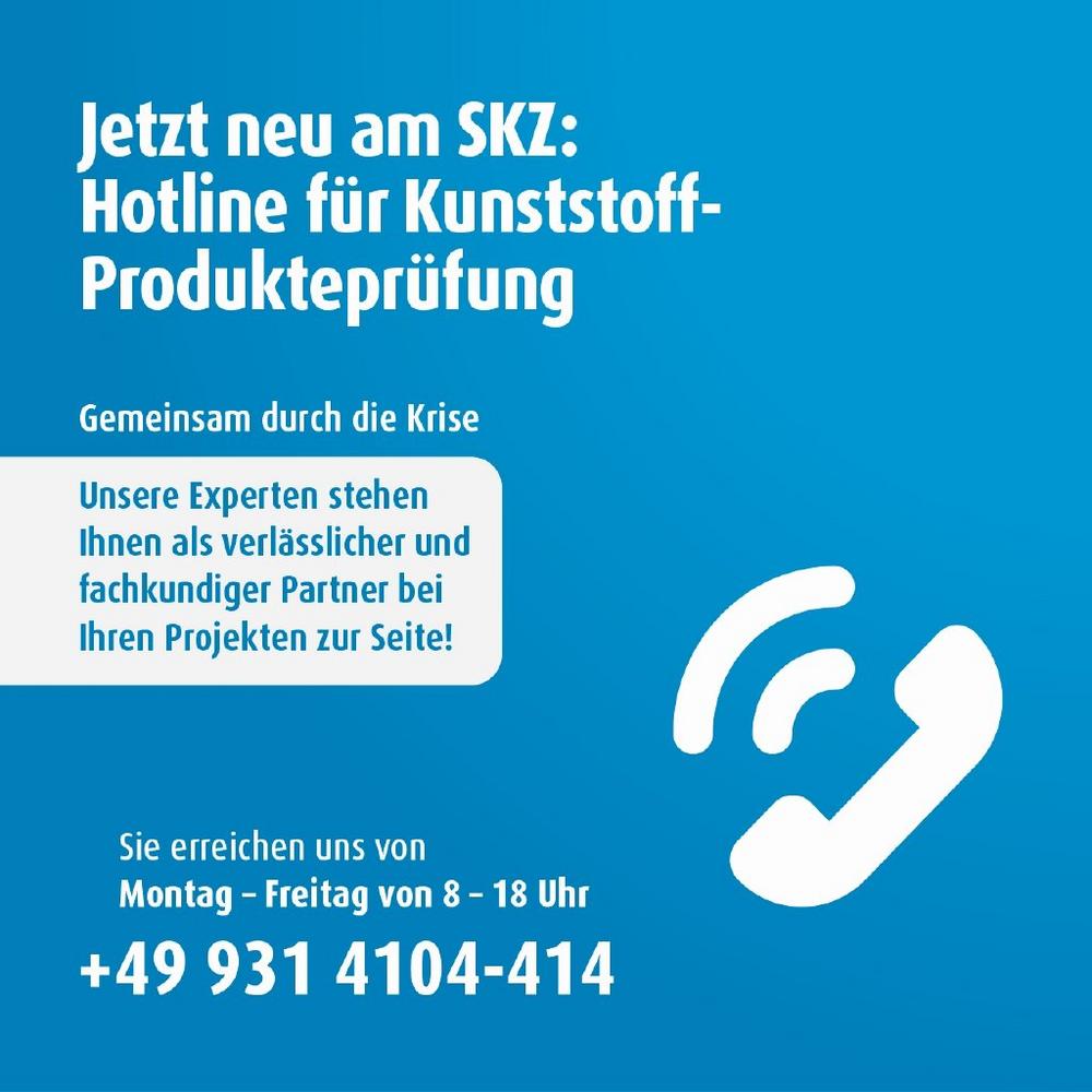 „In diesen schwierigen Zeiten möchte die SKZ-Testing gemeinsam mit ihrer Tochter Analytik Service Obernburg (ASO) den Kunststofffirmen auch weiter als verlässlicher und starker Partner zur Seite stehen und schaltet als weiteren Service eine Hotline für alle Fragen rund um das Thema Kunststoffprodukteprüfung“, erklärt Geschäftsführer Dr. Gerald Aengenheyster.