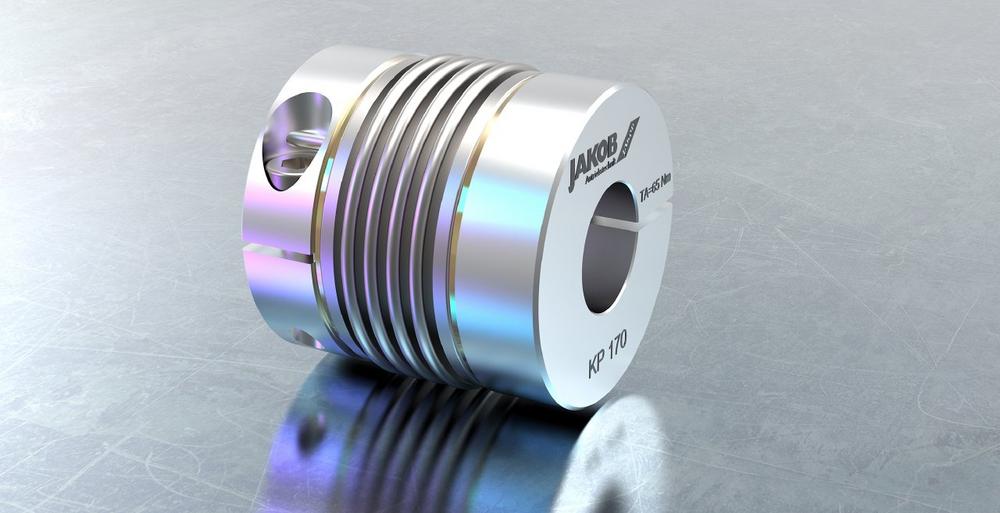 The coupling series KP with 4-corrugated bellows and two radial clamping hubs, is a version with shorter overall length in the JAKOB metal bellows coupling range. This makes it particularly suitable for applications with minimal shaft spacing and limited installation conditions. In addition, the very high torsional rigidity values ​​and the easy-to-install clamping hub design are worth mentioning. A low moment of inertia and good values ​​for the permissible shaft misalignments and restoring forces complete the positive picture.