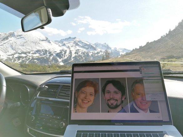 Neben dem Referenten David Bodensohn (Business Development), der aus seinem Homeoffice aus Frankfurt zugeschaltet war, begrüßen die beiden itl-Urgesteine Dieter Gust (Leiter F&E) und Ela Himmelreich (Veranstaltungsmanagement) die Teilnehmer, die sich online im Veranstaltungsraum eingefunden hatten.