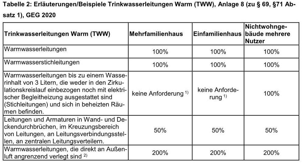 Anmerkung: Die Anforderungen an die Dämmung ergeben sich aus Anlage 8 GEG 2020. Anlage 8 führt die Anforderungen der bisherigen Anlage 5 der Energieeinsparverordnung unverändert fort.
