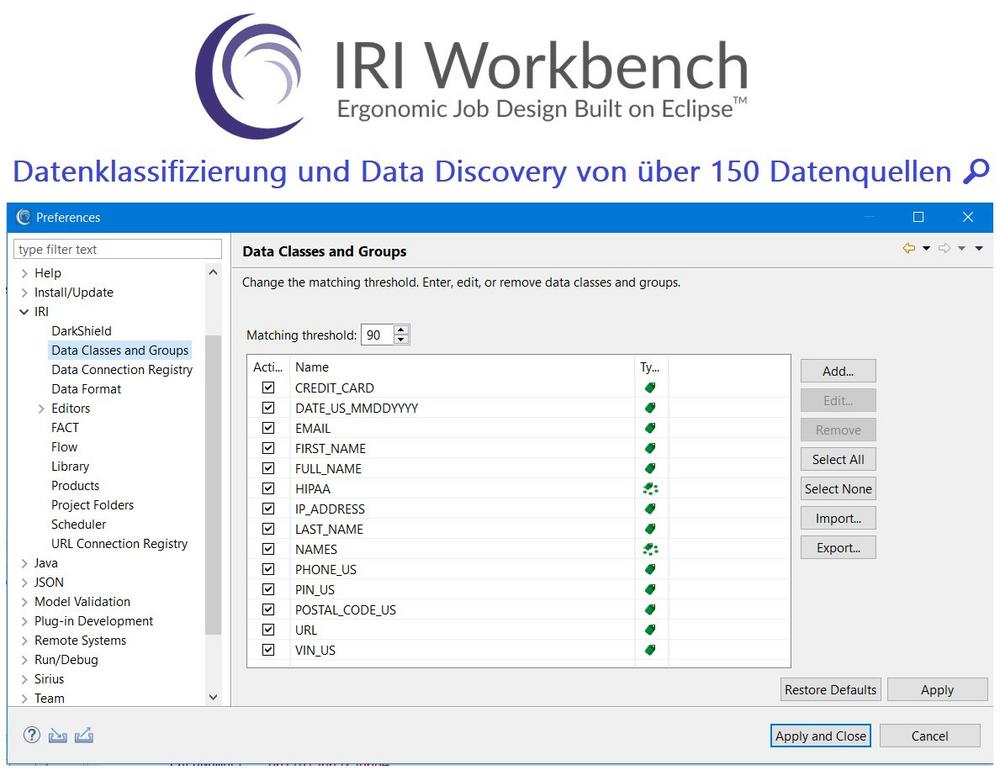 IRI Workbench™ ist die kostenlose grafische Benutzeroberfläche (GUI) und integrierte Entwicklungsumgebung (IDE) für alle IRI-Datenmanagement- und Schutzsoftwareprodukte und die Voracity-Plattform, die sie beinhaltet. Die unter Windows, MacOS und Linux verfügbare Workbench steuert Aufträge über bewährte IRI CoSort und Hadoop Engines und nutzt dabei alles, was Eclipse™ bietet.