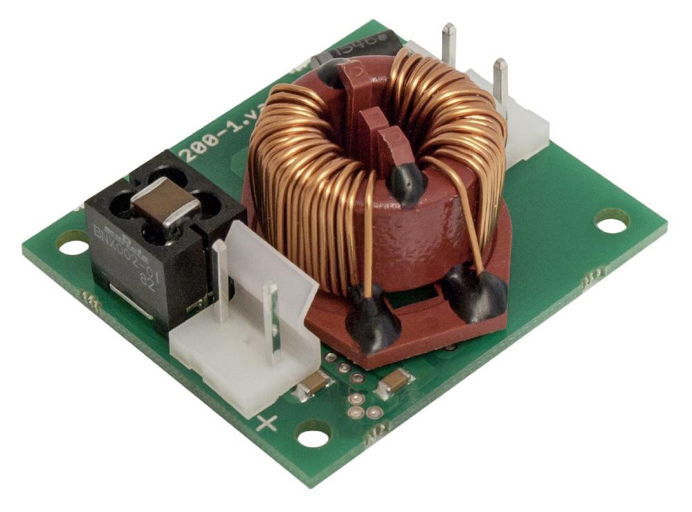 Das Gleichtaktfilter (eng: Common-Mode-Filter) CMF200.1 ist für Betriebsspannungen bis 50 VDC und Dauerströme bis 4 A (Spitzenstrom 6 A) ausgelegt. Eine Diode sorgt für einen innerhalb 25 ns ansprechenden Verpolschutz, um Schäden an der nachgeschalteten Applikation wirksam zu vermeiden. Das CMF200.1 kann ohne Kühlung im Temperaturbereich -10°…+70° C eingesetzt werden. Selbst bei 100% Last beträgt die MTBF über 200.000 Stunden (knapp 23 Jahre Dauerbetrieb); bei 80% Last über 300.000 Stunden nach SN 29500.