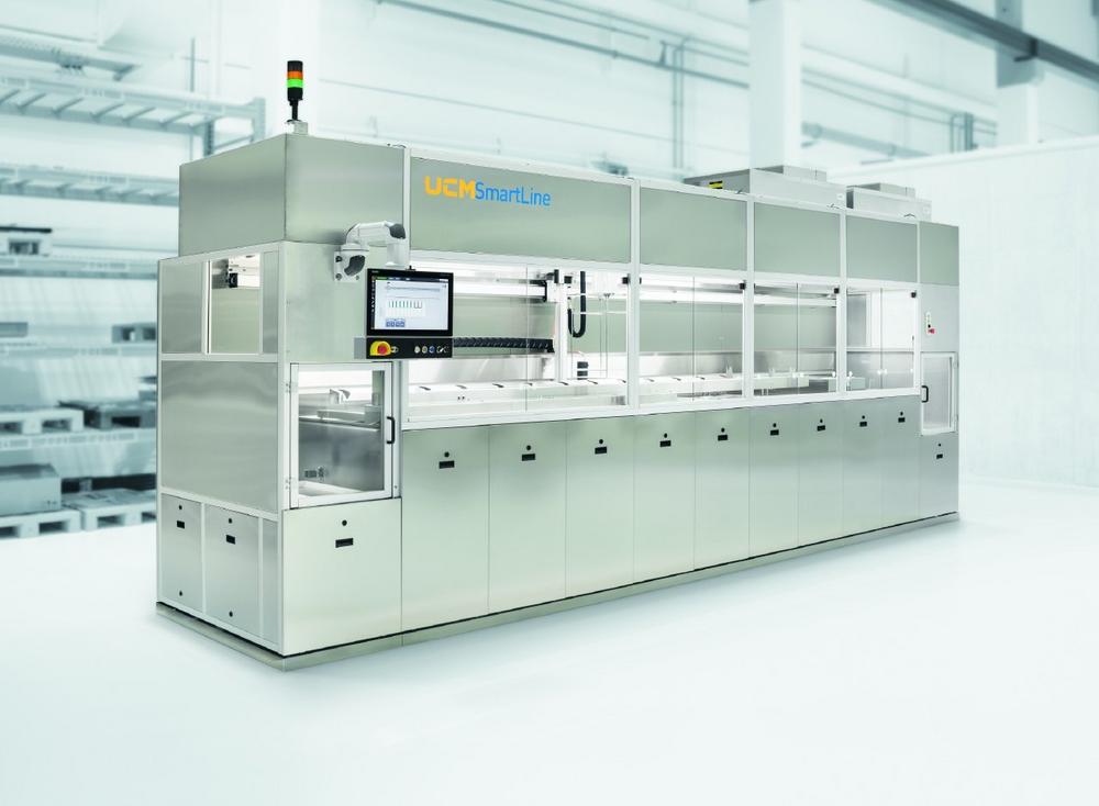 Die Ausstattung der serienmäßig beheizten und mit einem Filterkreislauf ausgestatteten Reinigungseinheiten mit Ultraschall ist ebenfalls sehr flexibel anpassbar. So ist der Einsatz von Mono- (25, 40, 80 kHz), Twin- (25/50, 40/80 kHz) und Multifrequenz-Ultraschall (40/80/120 kHz) möglich. Platziert werden die Ultraschallschwinger am Boden und/oder einer Seite der 370 x 420 x 390 mm (L x B x H) messenden Wannen. Getrocknet werden die Teile durch Infrarotstrahlungswärme, Warmluft oder unter Vakuum. Je nach Anwendungen lassen sich beide Trocknungstechnologien auch kombiniert einsetzen. Beim Be- und Entladen passt sich die UCMSmartLine mit frontseitig oder seitlich angeordneten Stationen den jeweiligen räumlichen Bedingungen an. Es kann manuell oder automatisiert durchgeführt werden.