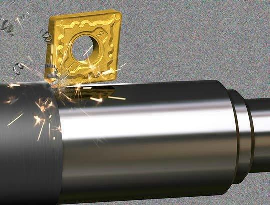 The inserts are finished in a gold colour for easy identification of used edges and are available in 6 negative geometries, CNMG, DNMG, SNMG, TNMG, VNMG and WNMG, with 11 different chipbreakers.