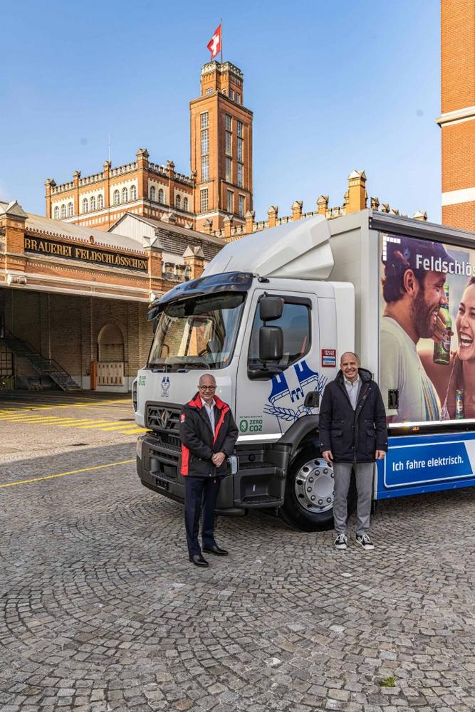 Am Dienstag, 24. November 2020, hat der Präsident von Renault Trucks, Bruno Blin, im Schweizer Rheinfelden einen D Wide Z.E. an den Geschäftsführer der Brauerei Feldschlösschen, einem Standort der Carlsberg-Gruppe, Thomas Amstutz, übergeben. Es ist das erste Fahrzeug einer Bestellung über zwanzig vollelektrische 26-Tonner. Dank der Nutzung elektrischer Lkw zeigen die Carlsberg-Gruppe und die Brauerei Feldschlösschen, dass ein CO²-freier Verteilerverkehr möglich ist.