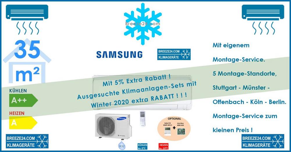 SAMSUNG Klimaanlage Wandgerät Maldives 3,5kW R32 AR 12 RXFPEWQN + AR 12 RXFPEWQX Set für 1 Zimmer mit 35 m² Fläche