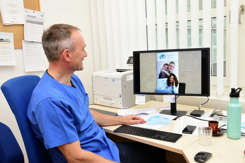 Prof. Matthias Heckmann, Leiter der Neonatologie und Pädiatrischen Intensivmedizin, tauschte sich jetzt in einem Video-Telefonat mit Claudia Bartz aus. Die Geschäftsführerin der Stiftung informierte sich dabei über den Einsatz des Simulators und der Wärmebetten. Heckmann dankte der Toni Kroos Stiftung und unterstrich die Bedeutung moderner Technik für Frühgeborene: „Dank ständiger Verbesserungen und Innovationen in der medizinischen Entwicklung haben heute auch extreme Frühgeborene mit einem Geburtsgewicht zwischen 500 und 1.000 Gramm hervorragende Überlebenschancen.“ In Deutschland wird etwa jedes zehnte Kind zu früh geboren.