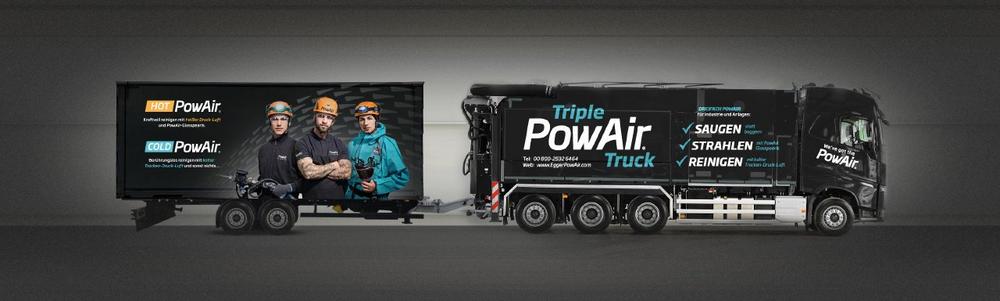 Die Mission: Professionelle, technische Reinigungsdienstleistung nach Stand der Technik und wegweisenden Methoden. Mit allem was dazugehört. „Wir sehen uns als Partner der Industrie und möchten nach dem Prinzip – ALLES AUS EINER HAND – den perfekten Rundum-Service bieten“, so Robert Egger. Mit seinem neuesten Wurf, dem „Triple PowAir Truck“, gelingt das ab sofort noch besser. Dieser innovative Saugbagger-LKW mit Anhänger führt alles mit, was für eine schnelle, professionelle Reinigung von Industrieanlagen gebraucht wird.