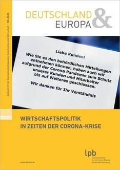 Das D&E-Heft 79-2020 „Wirtschaftspolitik in Zeiten der Corona-Krise“ umfasst 76 Seiten und ist kostenlos. Es kann (auch als Klassensatz) online bei der Landeszentrale bestellt werden: www.lpb-bw.de/shop oder www.deutschlandundeuropa.de. Die Versandkosten werden in Rechnung gestellt.