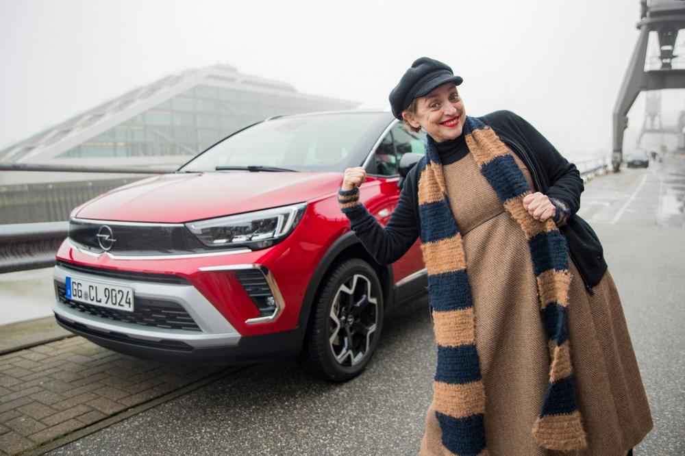 Kapitän, Rekord, Opel GT, Corsa – und jetzt der neue Crossland: Die Liebe zu Opel geht für Katharina Thalbach mit dem frisch gestylten, kompakten SUV in die nächste Runde, Fortsetzung folgt …