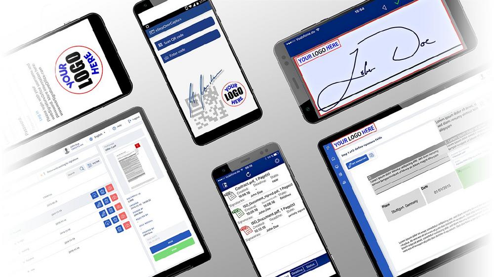 The web interface allows you to create electronic signature requests or sign pdf documents online. Components are fully integratable to adapt and replicate your existing processes. Your customer chooses whether to sign on a tablet-PC or mobile device, via QR-code, by finger or suitable pen.