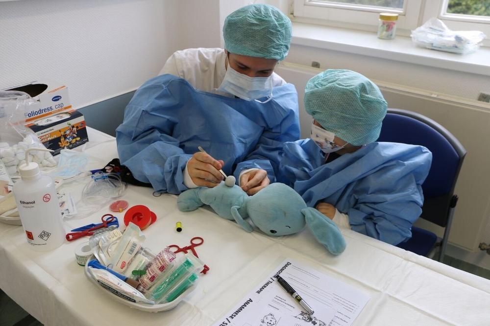 Parallel haben die Studierenden die Kitas der Region angeschrieben und sie ermuntert, kleine Außenstellen des Teddybär-Krankenhauses bei sich einzurichten. Den teilnehmenden Einrichtungen hatte die Initiative eine kleine Box und eine Anleitung mit allem geschickt, was zur Versorgung eines kranken Kuscheltiers nötig ist.