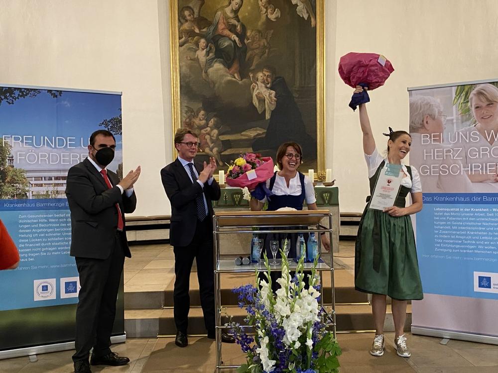 Mit den Sieger:innen freute sich auch Dr. Nadine Schmid-Pogarell, die Geschäftsführerin des Barmherzige Brüder Krankenhauses: „Gerade die Pflegekräfte haben in dieser Pandemie, die nun schon im 17. Monat unser aller Leben und Arbeiten im Krankenhaus nicht nur begleitet, sondern in verschiedenen Phasen auch beherrscht, die uns zum Teil an den Rand der Erschöpfung und ab und zu auch darüber hinaus brachte, bewiesen, dass sie Tag für Tag Herausragendes leisten! Ich freue mich, dass mit diesem Preis eine dem Patienten verpflichtete Medizin und Pflege an unserem Haus nicht nur erkannt und anerkannt, sondern auch ausgezeichnet wird.“