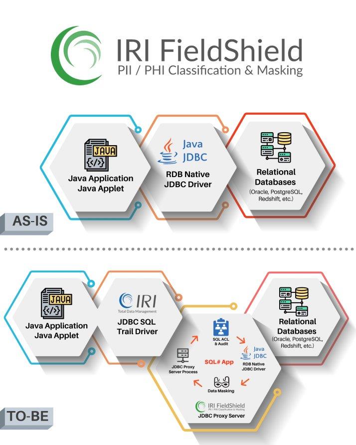 Dieser Artikel beschreibt eine Methode zur dynamischen Datenmaskierung (DDM), die für IRI FieldShield verfügbar ist und ein Proxy-basiertes System zum Abfangen von Anwendungsabfragen an JDBC-verbundene Datenbanken verwendet. Es ist einer von mehreren Ansätzen zur Maskierung von Daten im Flug, die FieldShield-Benutzer in Betracht ziehen können.