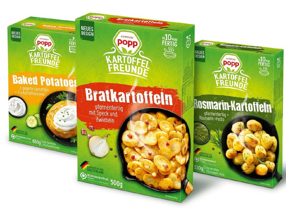 Ab 1. Oktober führt der Hersteller seine vorgegarten Kartoffelspezialitäten unter der neuen Submarke „Popp-Kartoffelfreunde“ ein. Das Verpackungsdesign wurde entsprechend aktualisiert. Damit möchte Popp das Profil seines Angebots für die unkomplizierte Kartoffelküche schärfen und die Markenwahrnehmung stärken.