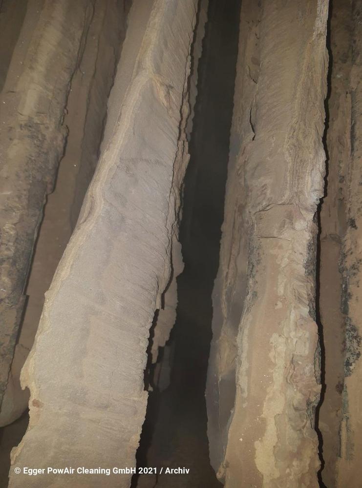 Normalerweise werden die besten Erfolge mit HOT PowAir und Egger PowAir Glass Pearls erzielt. Doch damit war bei dieser Industrieanlage nichts zu machen. Da musste ein stärkeres Kaliber her: HOT PowAir mit Egger Glass Granulat.